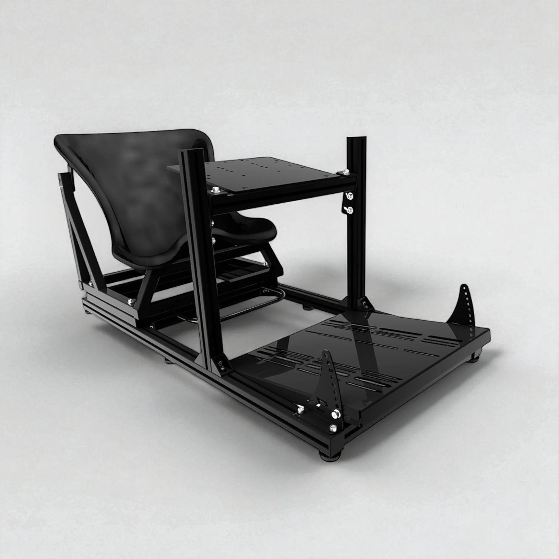 The BFR Black 80mm x 40mm aluminum extrusion racing simulator chassis makes it a great platform for any sim racing rig. The aluminum extrusion is completely modular so you can add your favorite peripherals. It also makes it the most stable platform on the market with zero flex in the steering wheel and pedals.