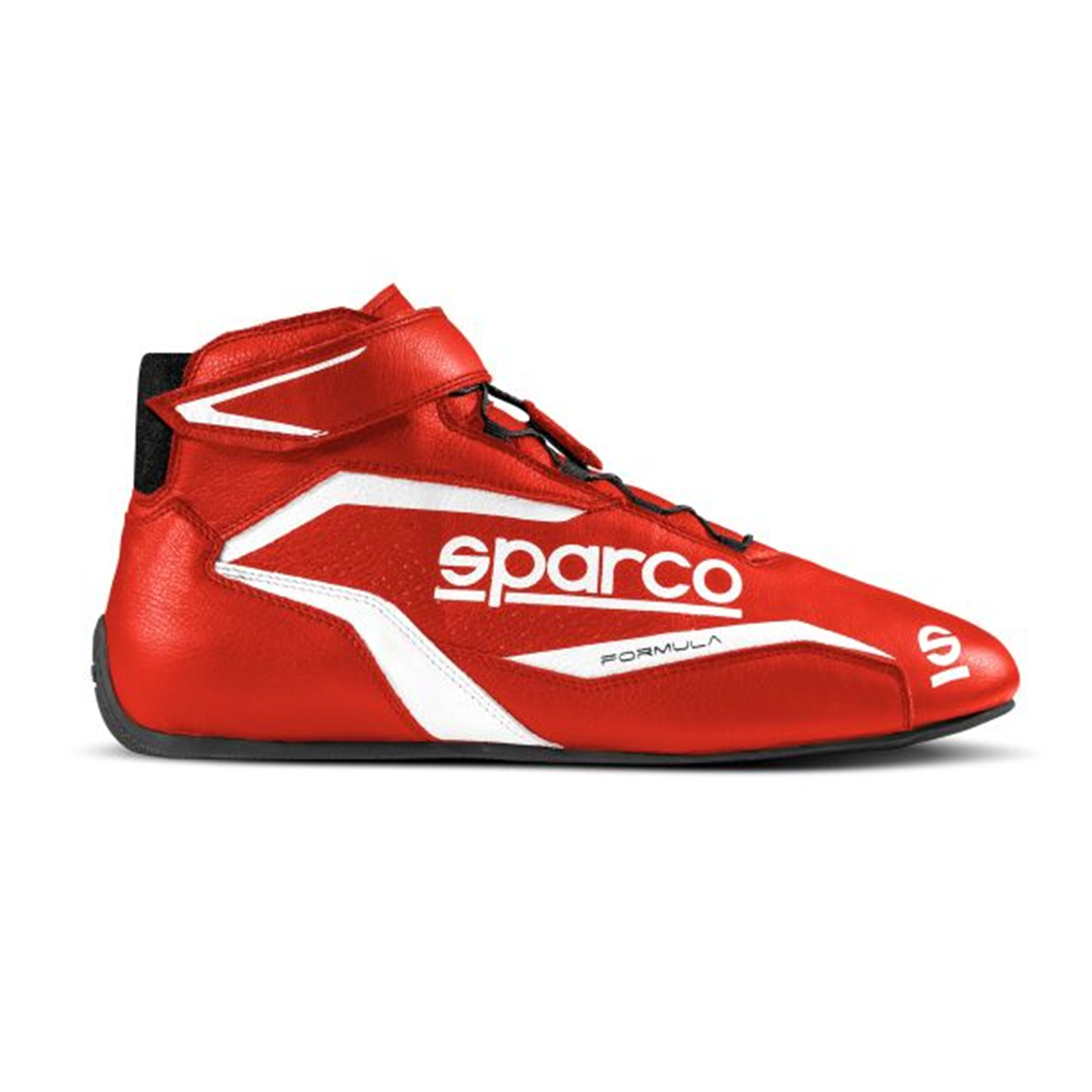 The Sparco Formula race shoe is a high-end traditional race shoe. The mid-boot design features a full ultra-soft calf skin leather upper with perforated vents for breathability. The upper has a Velcro strap closure for better support and adjustability. The Formula features a unique Speed Lace system that has a Velcro attachment that secures the loose end of the laces to the tongue. The Formula has an Achilles stretch panel for improved mobility and comfort. The Formula has a next generation sole made in pure lightweight rubber which enhances the pedal feel and is also anti-static, fuel and oil resistant. The Formula has a pre-formed anatomic insole. The Formula is FIA 8858-2018 and SFI 3.3/5 approved.