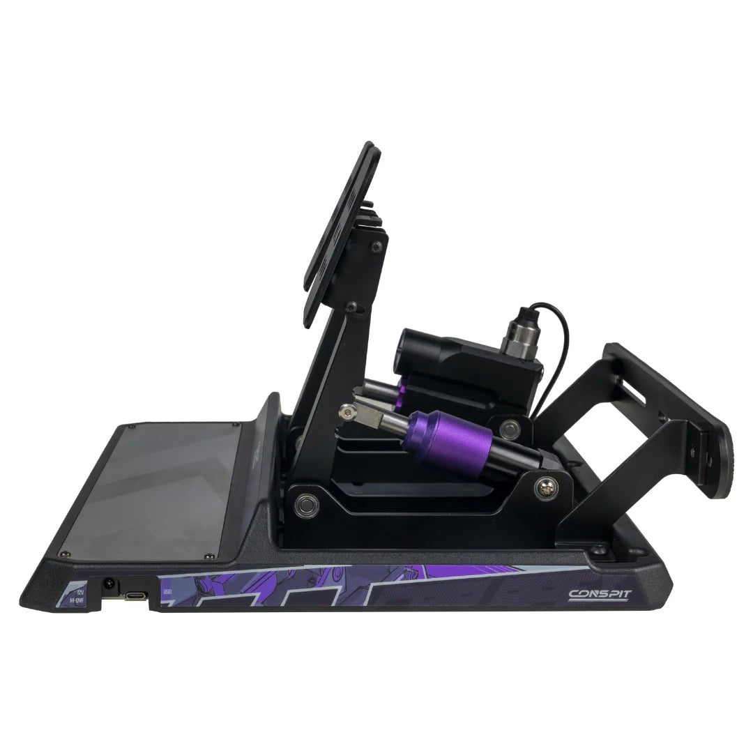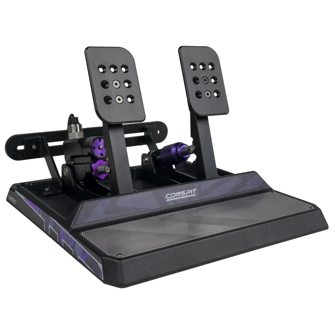 - 5mm Laser-Cut Steel Chassis: High strength for long-term durability - Damped Sandwich Structure: Multi-layer design absorbs vibrations effectively - Brushed Stainless Heelrest: Wear-resistant, with laser-engraved CONSPIT silhouette - Adjustable Pedal Mounting: Recessed design allows customizable pedal spacing - Side-Mounted Ports: Easy access even after installation on the rig - Clean Cable Routing: Hidden internal wiring for a tidy, user-friendly setup