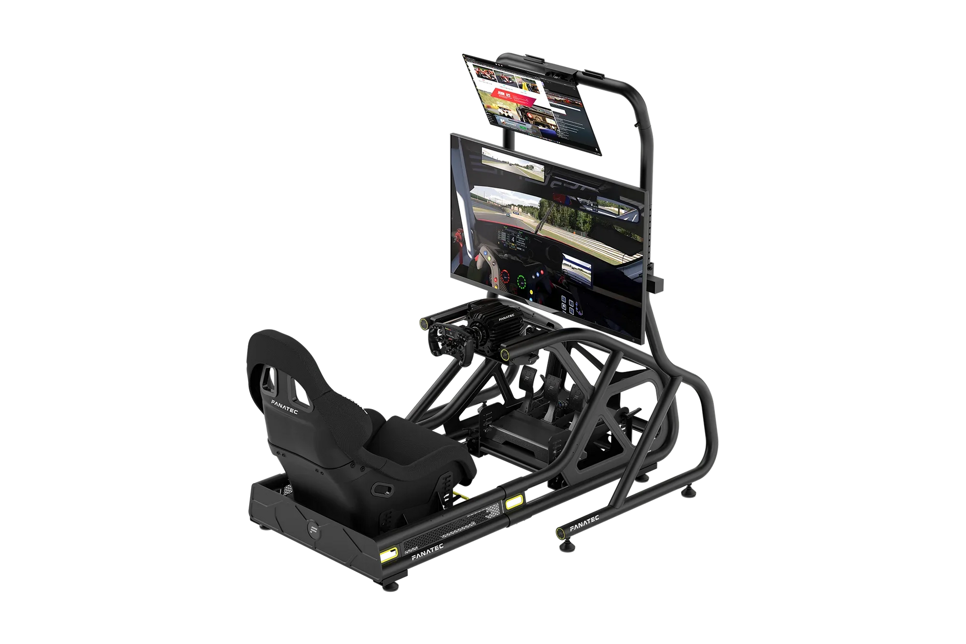 Stable, free-standing GT Cockpit Monitor Stand offers a big screen experience for use with the Fanatec ClubSport GT Cockpit.
