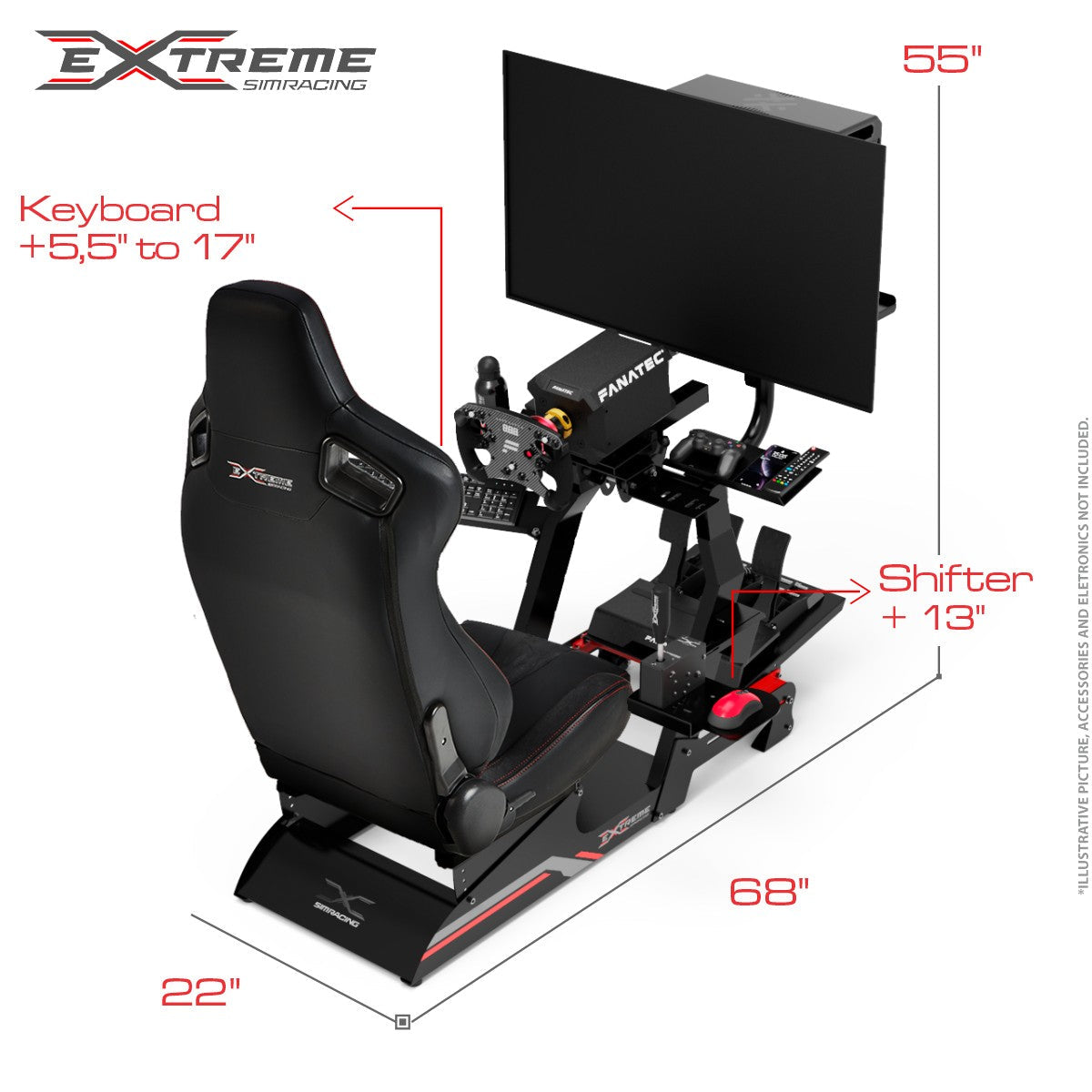 Our ESR Advanced Sim Racing Cockpit XT PREMIUM 3.0 maintains the quality already known for Extreme Simracing products. It uses our famous 3.0 chassis and the seat has an aggressive look inspired by the race tracks, it also has distance adjustment by tracks and adjustment of the tilt of the back.