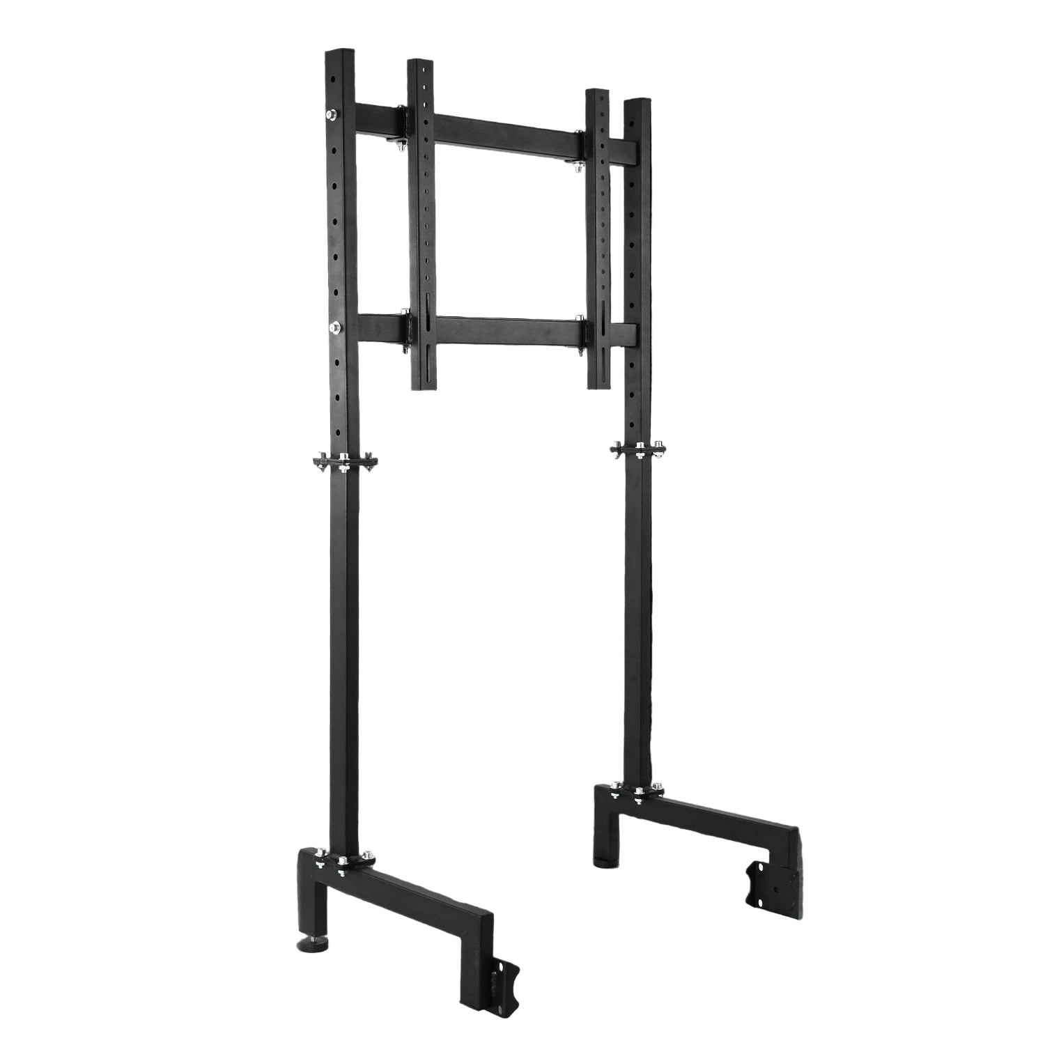 - Este soporte para monitor admite una pantalla de 27-65 pulgadas con una capacidad de carga de 220 lb. Cuenta con altura ajustable, se conecta y fija al soporte de tubo redondo grande a través de abrazaderas curvas, y permite el ajuste libre de las posiciones delantera y trasera para adaptarse a diferentes distancias de uso.