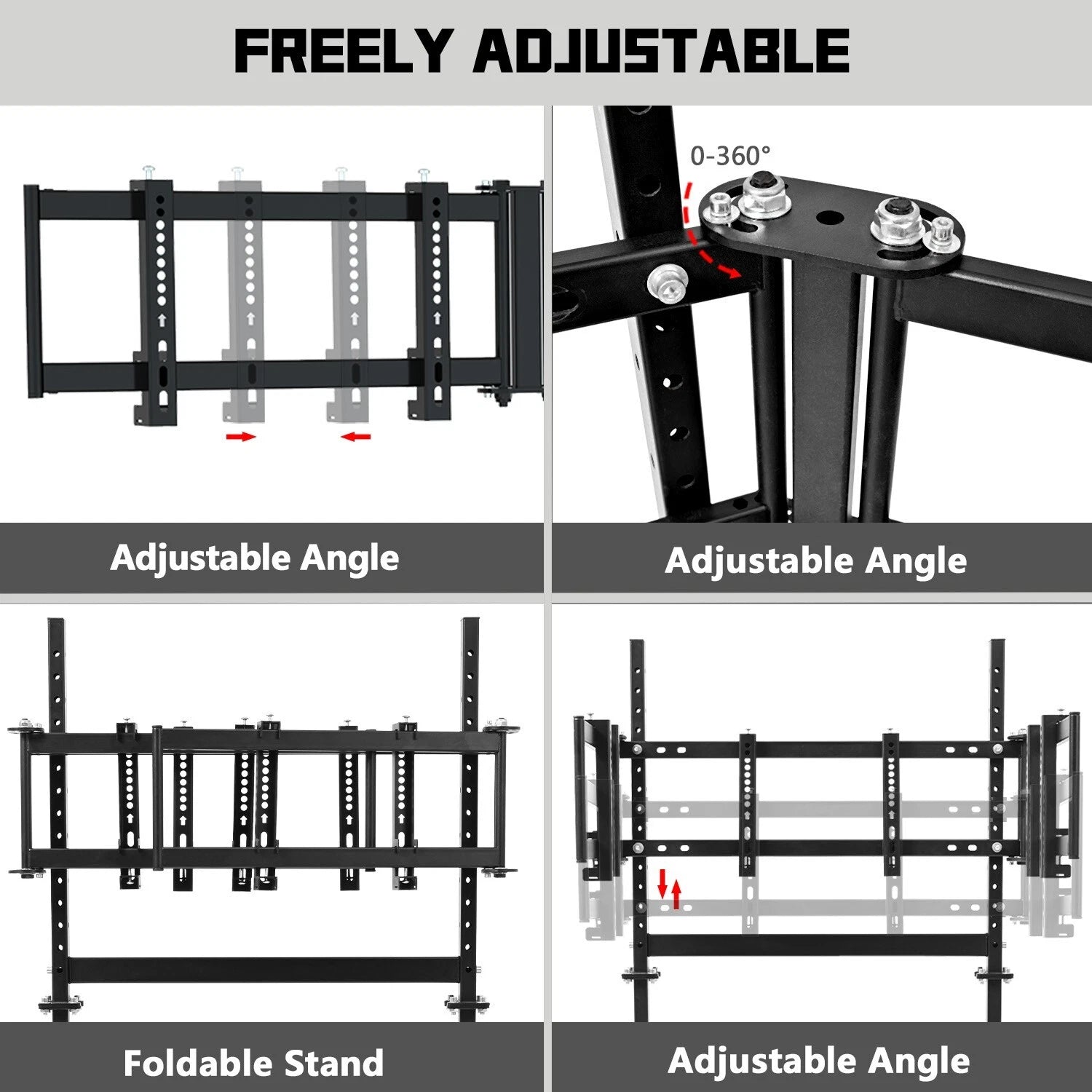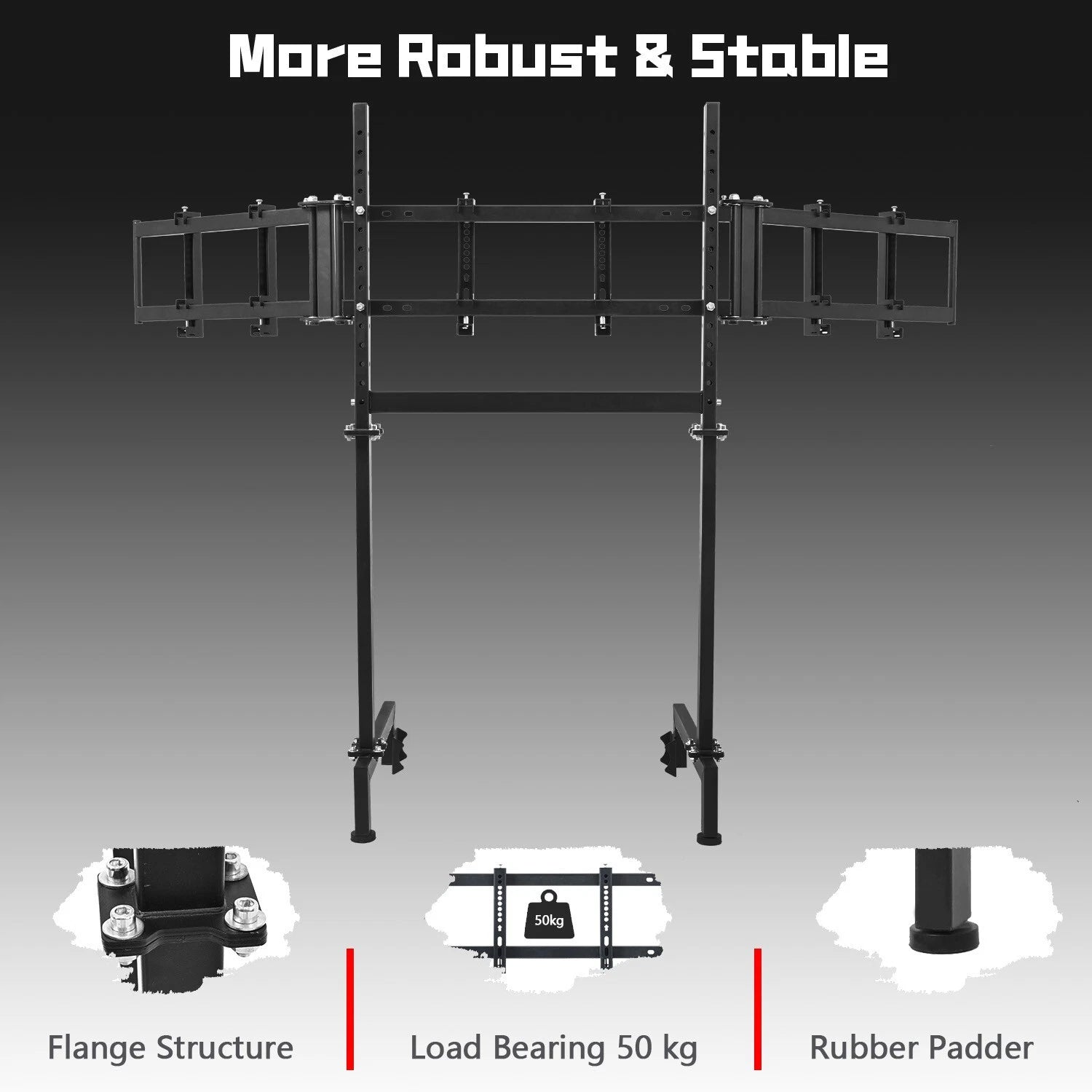 - Este soporte para monitor de triple pantalla admite 3 unidades de pantallas de 27 o 32 pulgadas, con una capacidad de carga de 120 libras. Ofrece un campo de visión más amplio, y tanto la altura del soporte como la distancia delantera-trasera son ajustables.